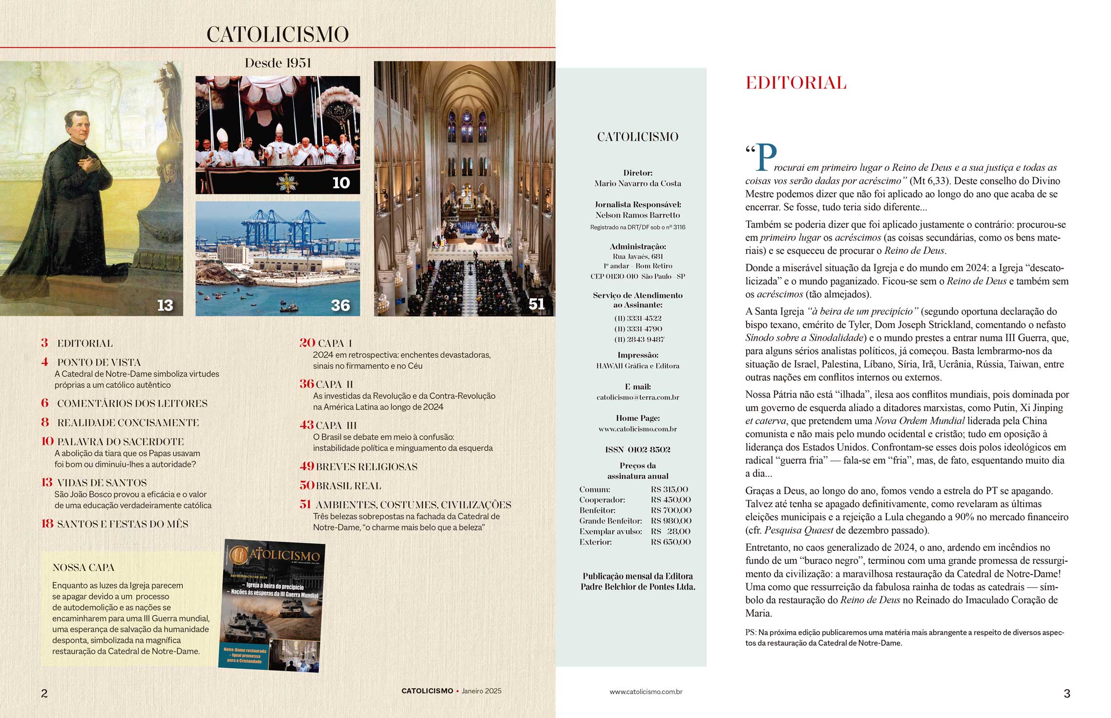 Entretanto, no caos generalizado de 2024, o ano, ardendo em incêndios no fundo de um “buraco negro”, terminou com uma grande promessa de ressurgimento da civilização: a maravilhosa restauração da Catedral de Notre-Dame! Uma como que ressurreição da fabulosa rainha de todas as catedrais — símbolo da restauração do Reino de Deus no Reinado do Imaculado Coração de Maria.