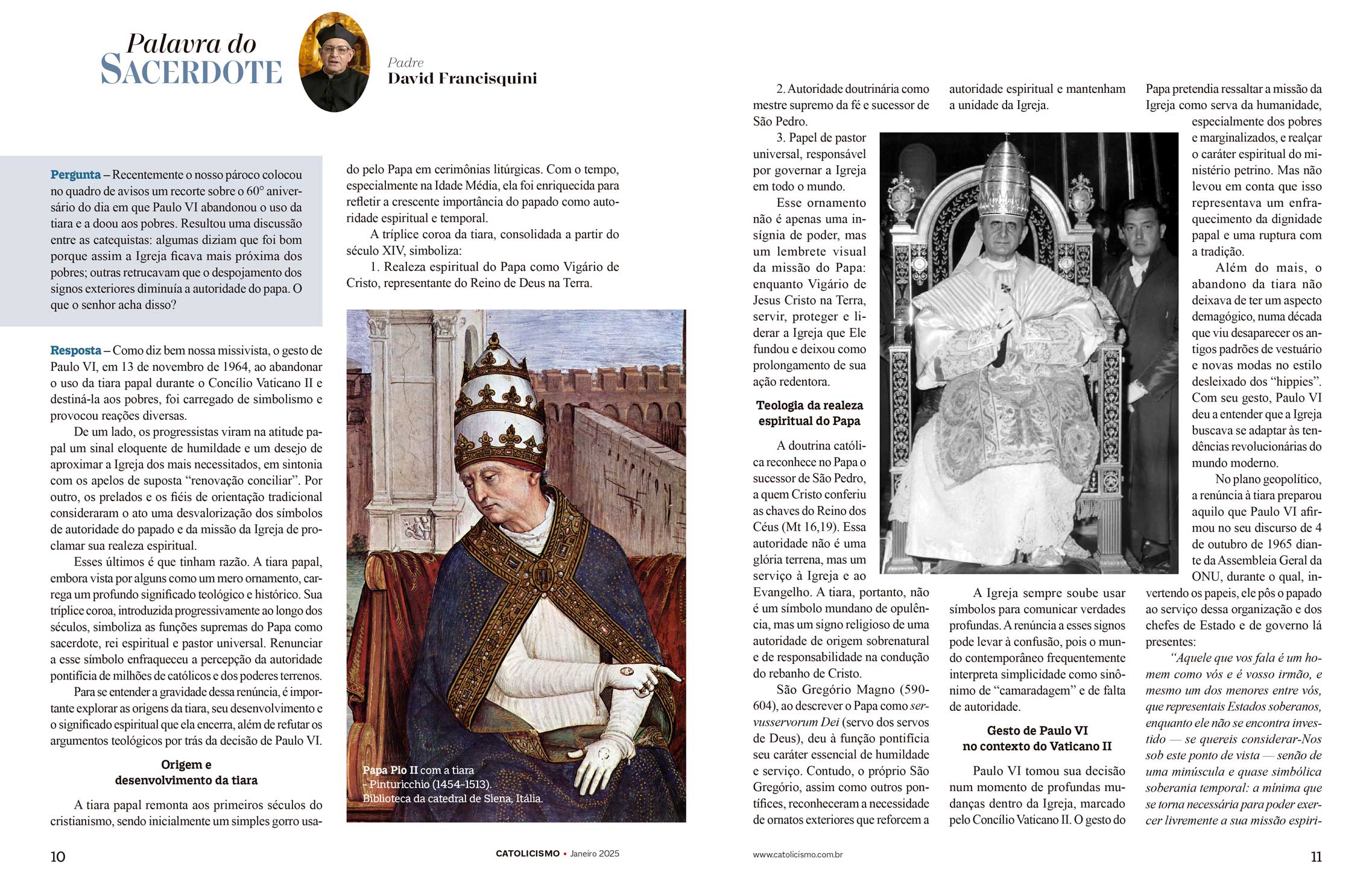 PERGUNTA – Recentemente o nosso pároco colocou no quadro de avisos um recorte sobre o 60° aniversário do dia em que Paulo VI abandonou o uso da tiara e a doou aos pobres. Resultou uma discussão entre as catequistas: algumas diziam que foi bom porque assim a Igreja ficava mais próxima dos pobres; outras retrucavam que o despojamento dos signos exteriores diminuía a autoridade do papa. O que o senhor acha disso?