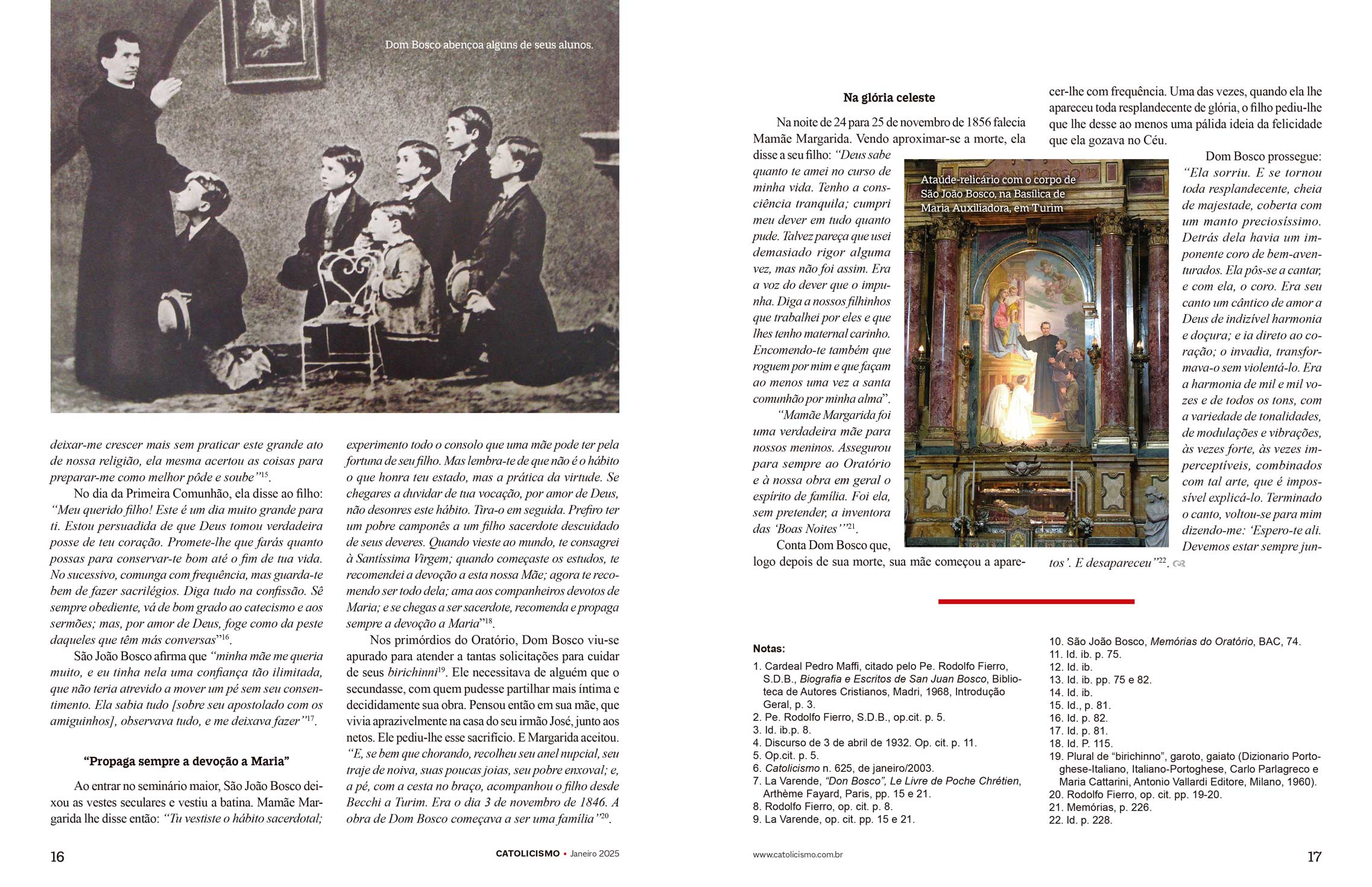 São João Bosco afirma que “minha mãe me queria muito, e eu tinha nela uma confiança tão ilimitada, que não teria atrevido a mover um pé sem seu consentimento. Ela sabia tudo [sobre seu apostolado com os amiguinhos], observava tudo, e me deixava fazer”17.