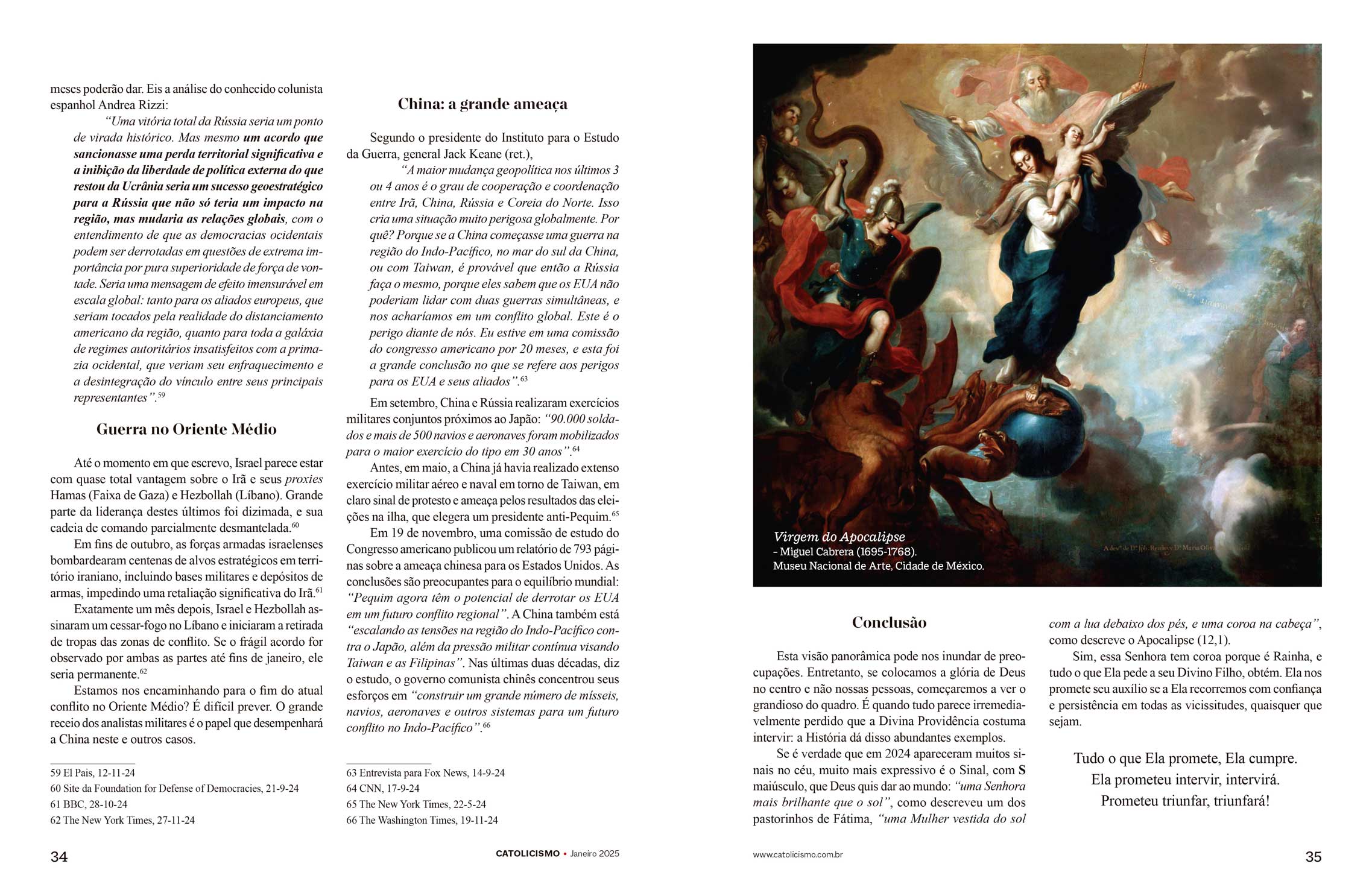 Em 19 de novembro, uma comissão de estudo do Congresso americano publicou um relatório de 793 páginas sobre a ameaça chinesa para os Estados Unidos. As conclusões são preocupantes para o equilíbrio mundial: “Pequim agora têm o potencial de derrotar os EUA em um futuro conflito regional”. A China também está “escalando as tensões na região do Indo-Pacífico contra o Japão, além da pressão militar contínua visando Taiwan e as Filipinas”. Nas últimas duas décadas, diz o estudo, o governo comunista chinês concentrou seus esforços em “construir um grande número de mísseis, navios, aeronaves e outros sistemas para um futuro conflito no Indo-Pacífico”. (66)