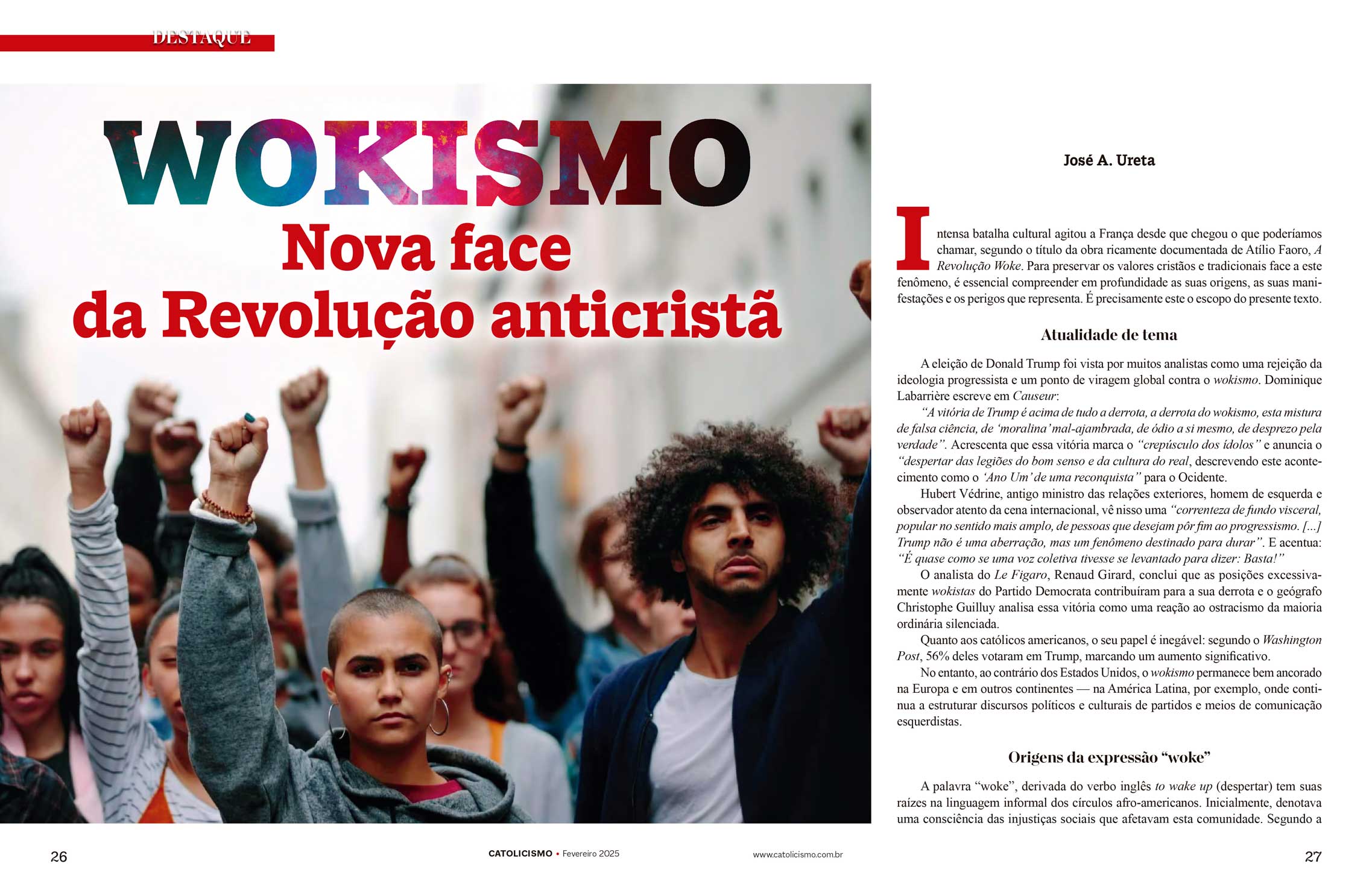 “A vitória de Trump é acima de tudo a derrota, a derrota do wokismo, esta mistura de falsa ciência, de ‘moralina’ mal-ajambrada, de ódio a si mesmo, de desprezo pela verdade”. Acrescenta que essa vitória marca o “crepúsculo dos ídolos” e anuncia o “despertar das legiões do bom senso e da cultura do real, descrevendo este acontecimento como o ‘Ano Um’ de uma reconquista” para o Ocidente.