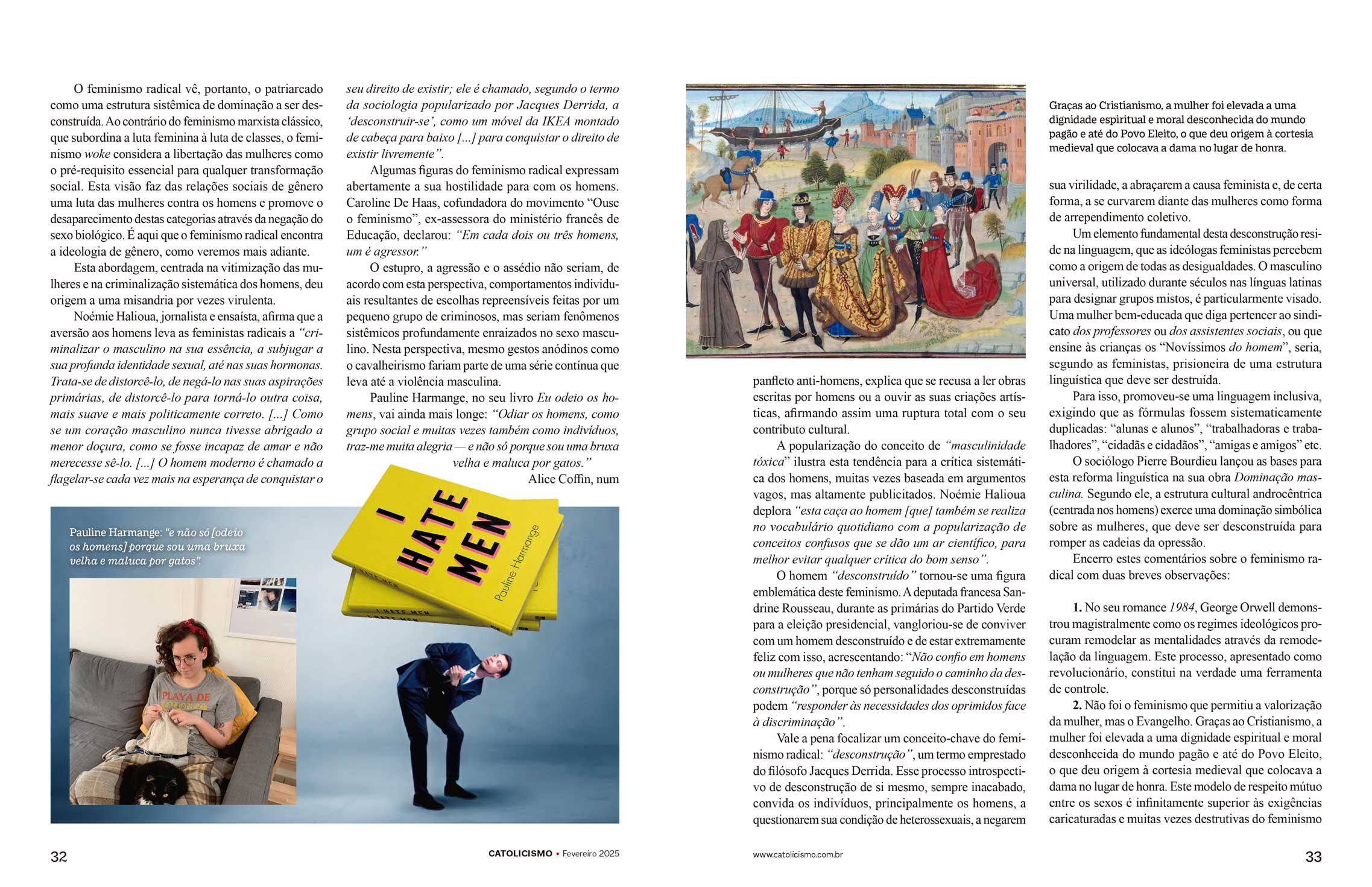 Pauline Harmange, no seu livro Eu odeio os homens, vai ainda mais longe: “Odiar os homens, como grupo social e muitas vezes também como indivíduos, traz-me muita alegria — e não só porque sou uma bruxa velha e maluca por gatos.”