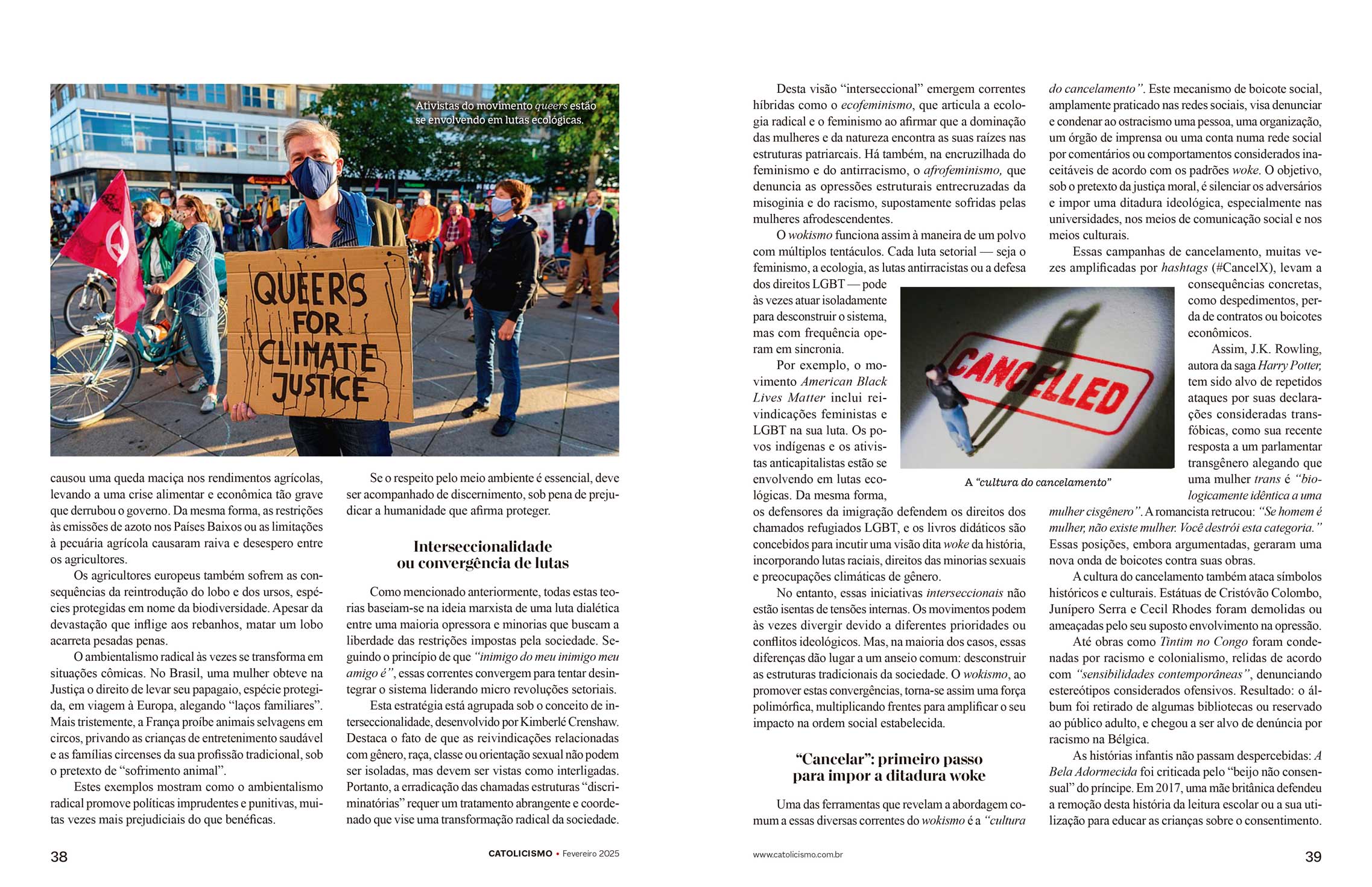Por exemplo, o movimento American Black Lives Matter inclui reivindicações feministas e LGBT na sua luta. Os povos indígenas e os ativistas anticapitalistas estão se envolvendo em lutas ecológicas. Da mesma forma, os defensores da imigração defendem os direitos dos chamados refugiados LGBT, e os livros didáticos são concebidos para incutir uma visão dita woke da história, incorporando lutas raciais, direitos das minorias sexuais e preocupações climáticas de gênero.