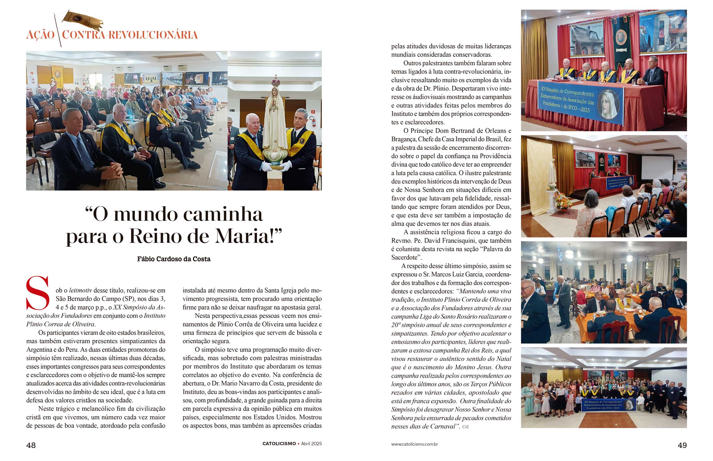 Sob o leitmotiv desse título, realizou-se em São Bernardo do Campo (SP), nos dias 3, 4 e 5 de março p.p., o XX Simpósio da Associação dos Fundadores em conjunto com o Instituto Plinio Correa de Oliveira.