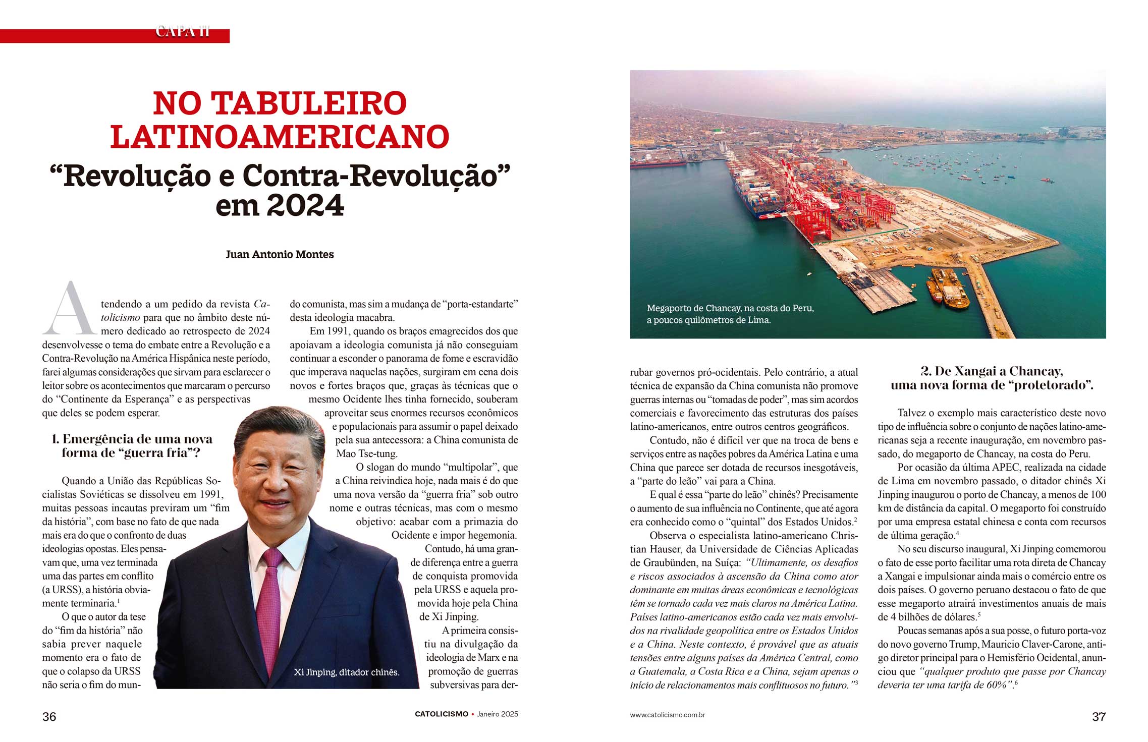 Atendendo a um pedido da revista Catolicismo para que no âmbito deste número dedicado ao retrospecto de 2024 desenvolvesse o tema do embate entre a Revolução e a Contra-Revolução na América Hispânica neste período, farei algumas considerações que sirvam para esclarecer o leitor sobre os acontecimentos que marcaram o percurso do “Continente da Esperança” e as perspectivas que deles se podem esperar.