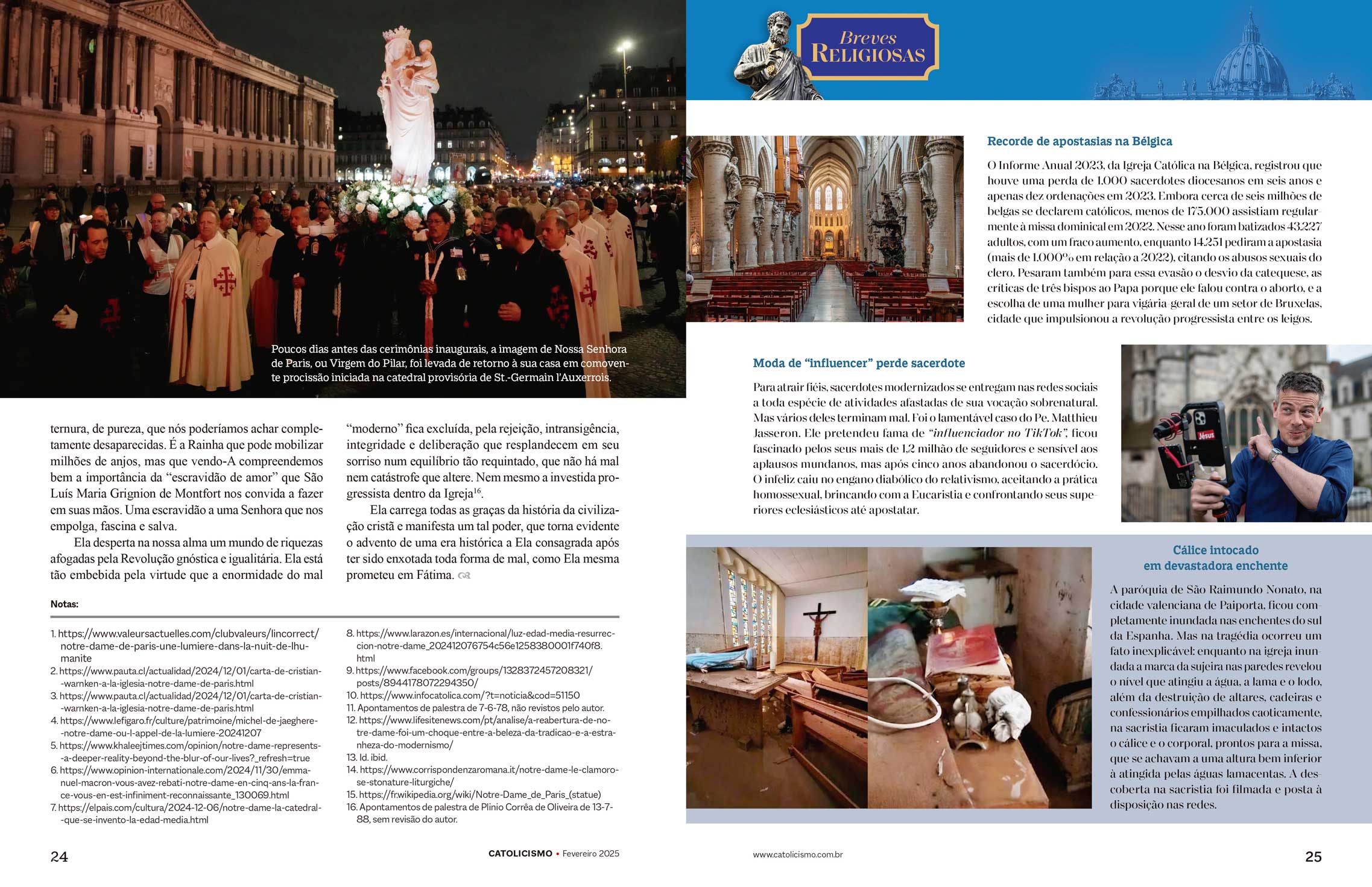 O Informe Anual 2023, da Igreja Católica na Bélgica, registrou que houve uma perda de 1.000 sacerdotes diocesanos em seis anos e apenas dez ordenações em 2023. Embora cerca de seis milhões de belgas se declarem católicos, menos de 175.000 assistiam regularmente à missa dominical em 2022. Nesse ano foram batizados 43.227 adultos, com um fraco aumento, enquanto 14.251 pediram a apostasia (mais de 1.000% em relação a 2022), citando os abusos sexuais do clero. Pesaram também para essa evasão o desvio da catequese, as críticas de três bispos ao Papa porque ele falou contra o aborto, e a escolha de uma mulher para vigária-geral de um setor de Bruxelas, cidade que impulsionou a revolução progressista entre os leigos.