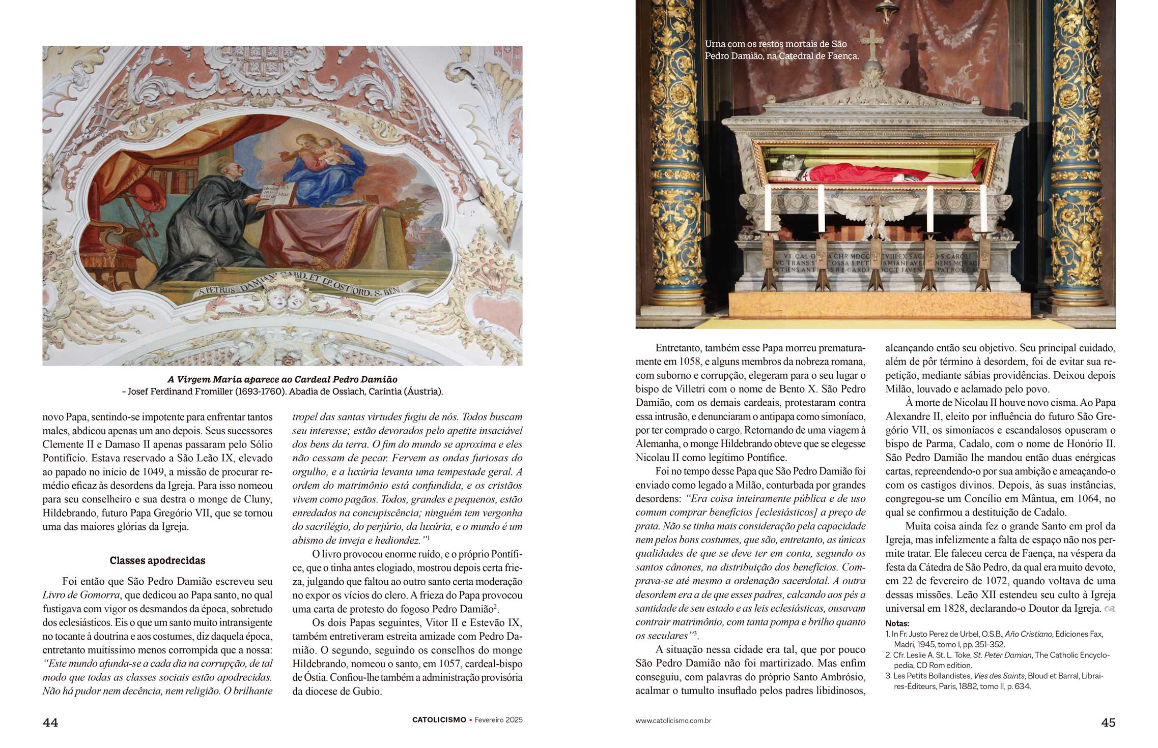 Foi então que São Pedro Damião escreveu seu Livro de Gomorra, que dedicou ao Papa santo, no qual fustigava com vigor os desmandos da época, sobretudo dos eclesiásticos. Eis o que um santo muito intransigente no tocante à doutrina e aos costumes, diz daquela época, entretanto muitíssimo menos corrompida que a nossa: “Este mundo afunda-se a cada dia na corrupção, de tal modo que todas as classes sociais estão apodrecidas. Não há pudor nem decência, nem religião. O brilhante tropel das santas virtudes fugiu de nós. Todos buscam seu interesse; estão devorados pelo apetite insaciável dos bens da terra. O fim do mundo se aproxima e eles não cessam de pecar. Fervem as ondas furiosas do orgulho, e a luxúria levanta uma tempestade geral. A ordem do matrimônio está confundida, e os cristãos vivem como pagãos. Todos, grandes e pequenos, estão enredados na concupiscência; ninguém tem vergonha do sacrilégio, do perjúrio, da luxúria, e o mundo é um abismo de inveja e hediondez.”1
