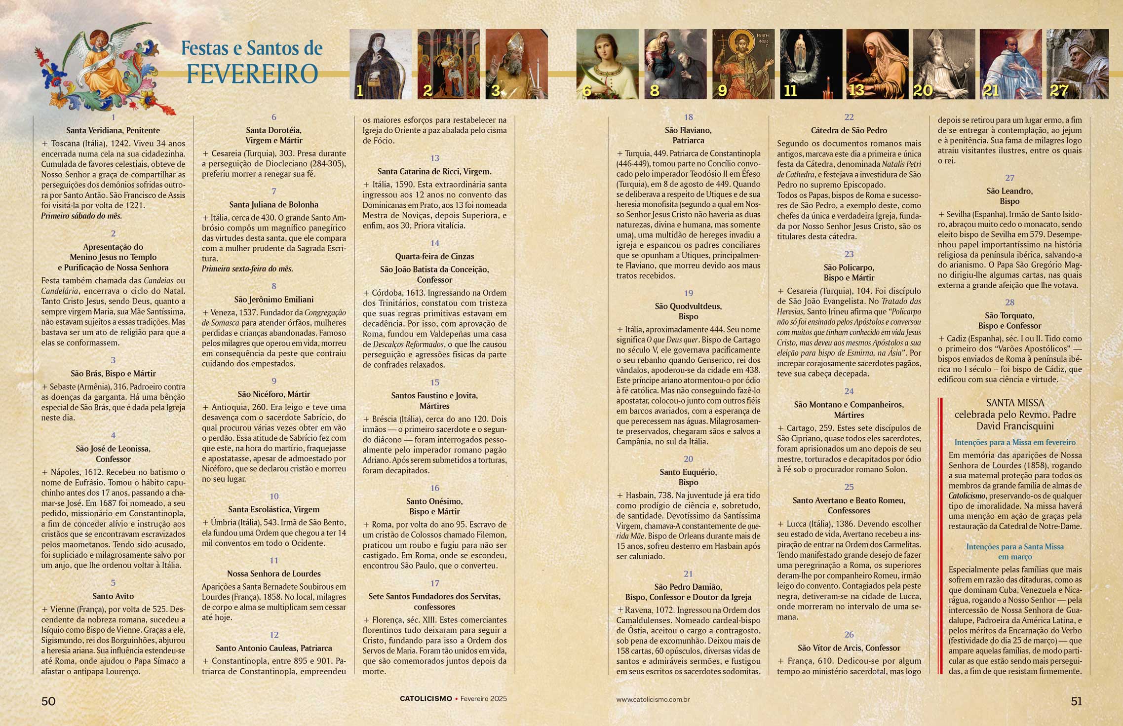 + Sebaste (Armênia), 316. Padroeiro contra as doenças da garganta. Há uma bênção especial de São Brás, que é dada pela Igreja neste dia.