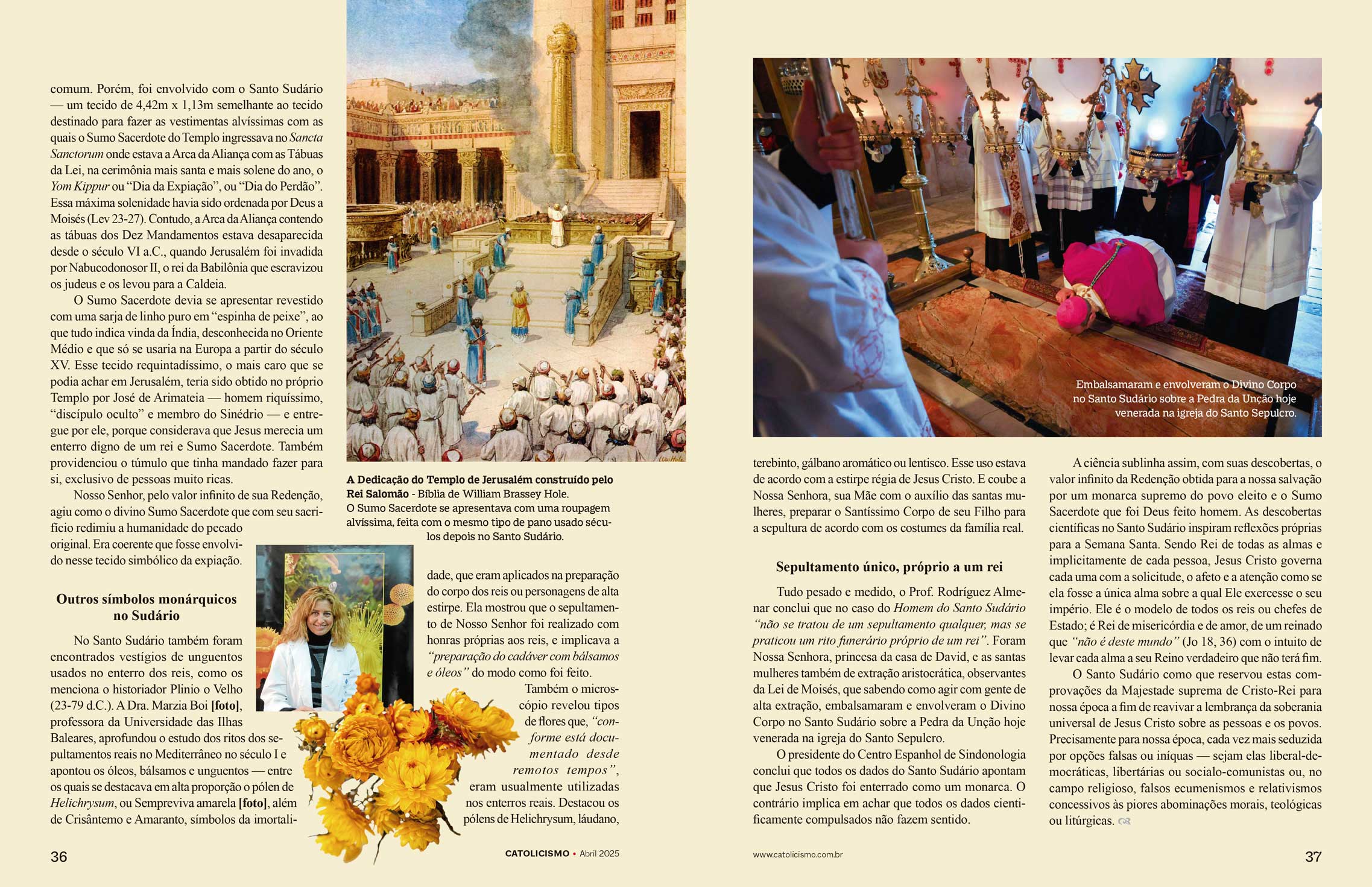 O presidente do Centro Espanhol de Sindonologia conclui que todos os dados do Santo Sudário apontam que Jesus Cristo foi enterrado como um monarca. O contrário implica em achar que todos os dados cientificamente compulsados não fazem sentido.