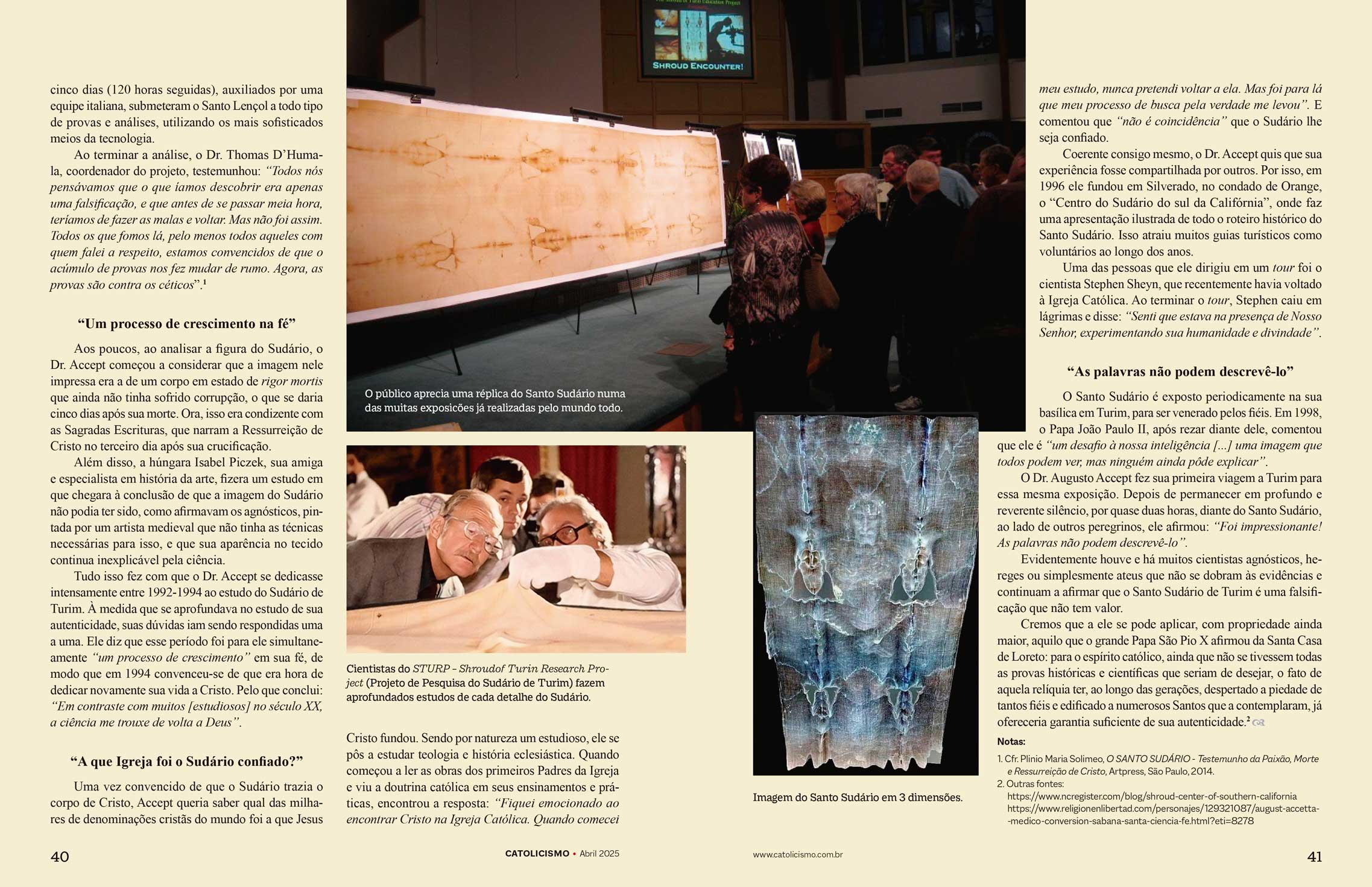 Cremos que a ele se pode aplicar, com propriedade ainda maior, aquilo que o grande Papa São Pio X afirmou da Santa Casa de Loreto: para o espírito católico, ainda que não se tivessem todas as provas históricas e científicas que seriam de desejar, o fato de aquela relíquia ter, ao longo das gerações, despertado a piedade de tantos fiéis e edificado a numerosos Santos que a contemplaram, já ofereceria garantia suficiente de sua autenticidade.2