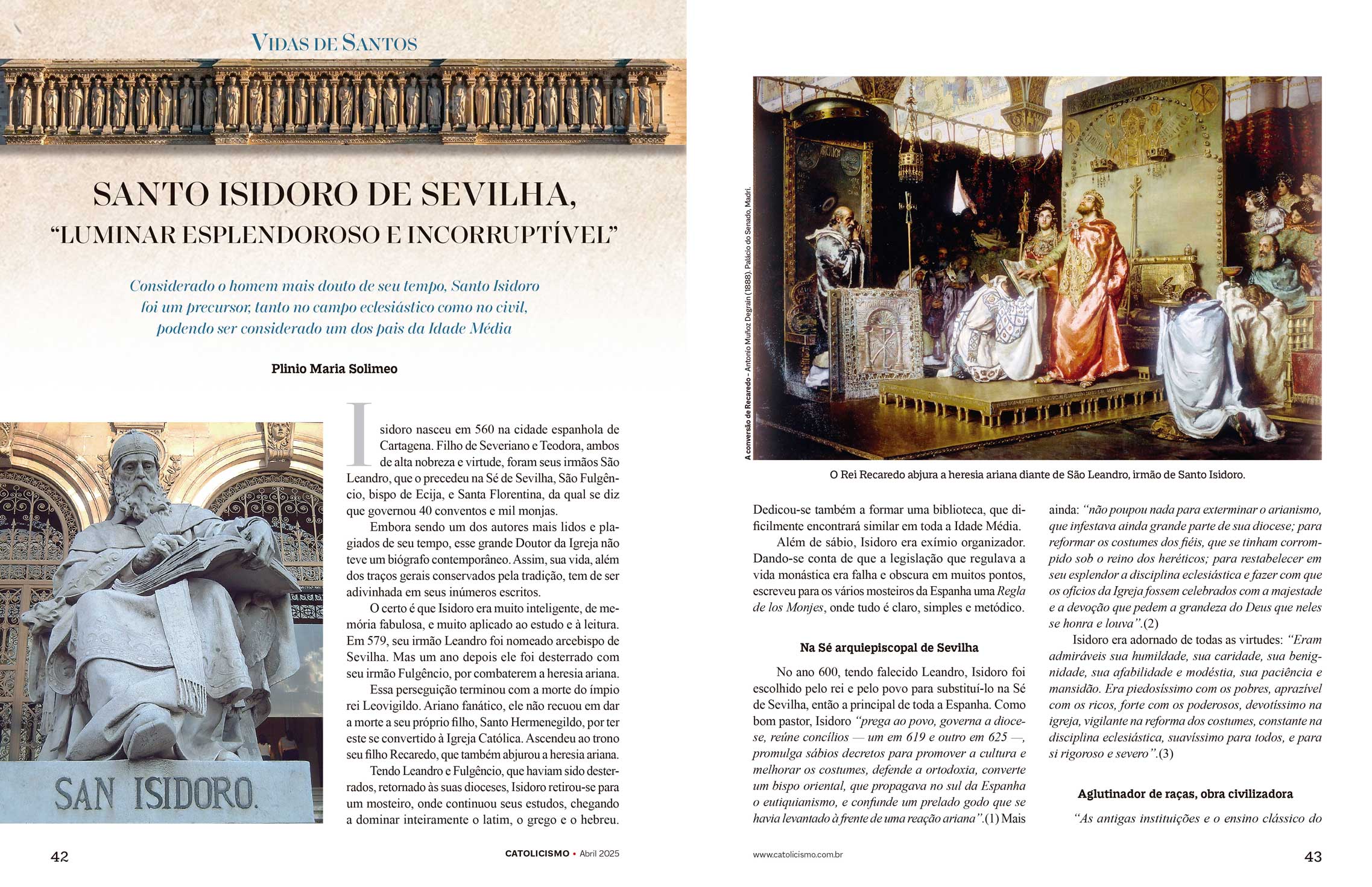 Essa perseguição terminou com a morte do ímpio rei Leovigildo. Ariano fanático, ele não recuou em dar a morte a seu próprio filho, Santo Hermenegildo, por ter este se convertido à Igreja Católica. Ascendeu ao trono seu filho Recaredo, que também abjurou a heresia ariana.